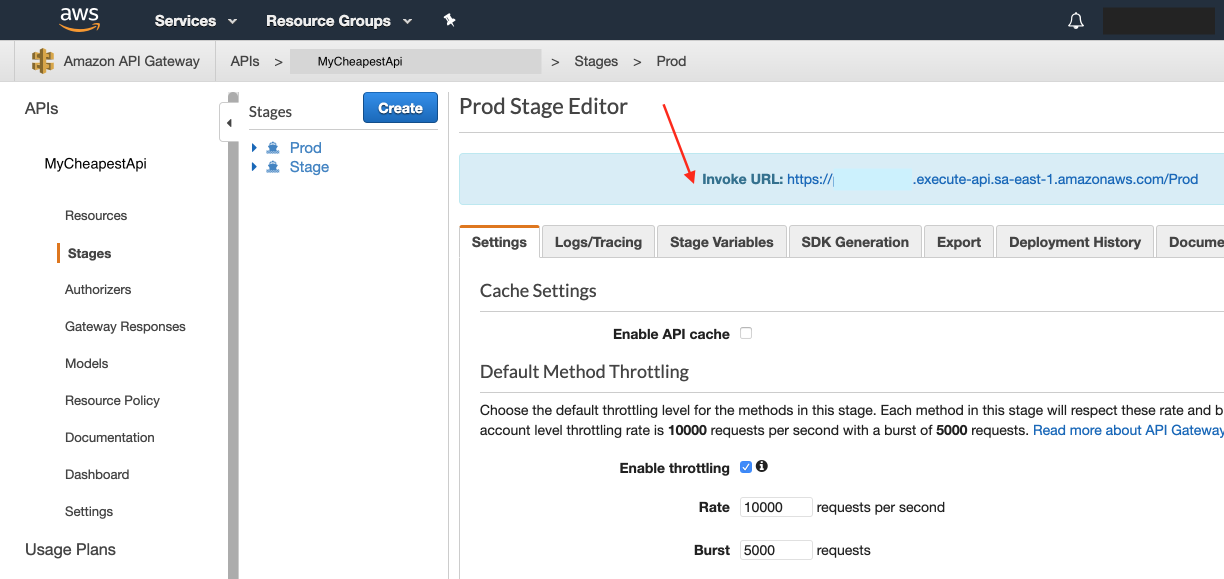To start making requests to your new API go first to the AWS Console, API Gateway menu, select the stage (Prod for example) and check the url: